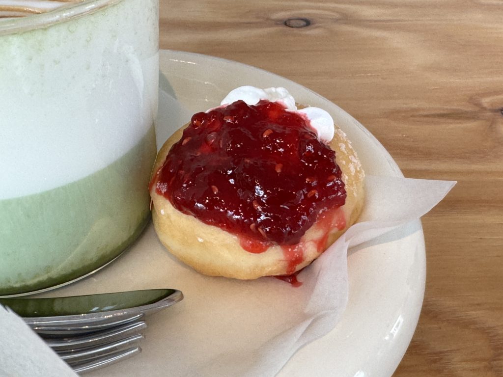 ⑤高橋のスナックミーさんのドーナツ。ほうじ茶味でした。白河三丁目に移転されています。